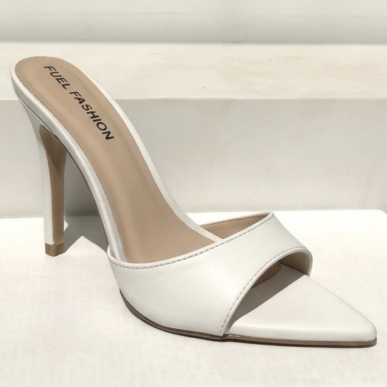 Mule Cavado Salto Fino Alto e Bico Folha Branco