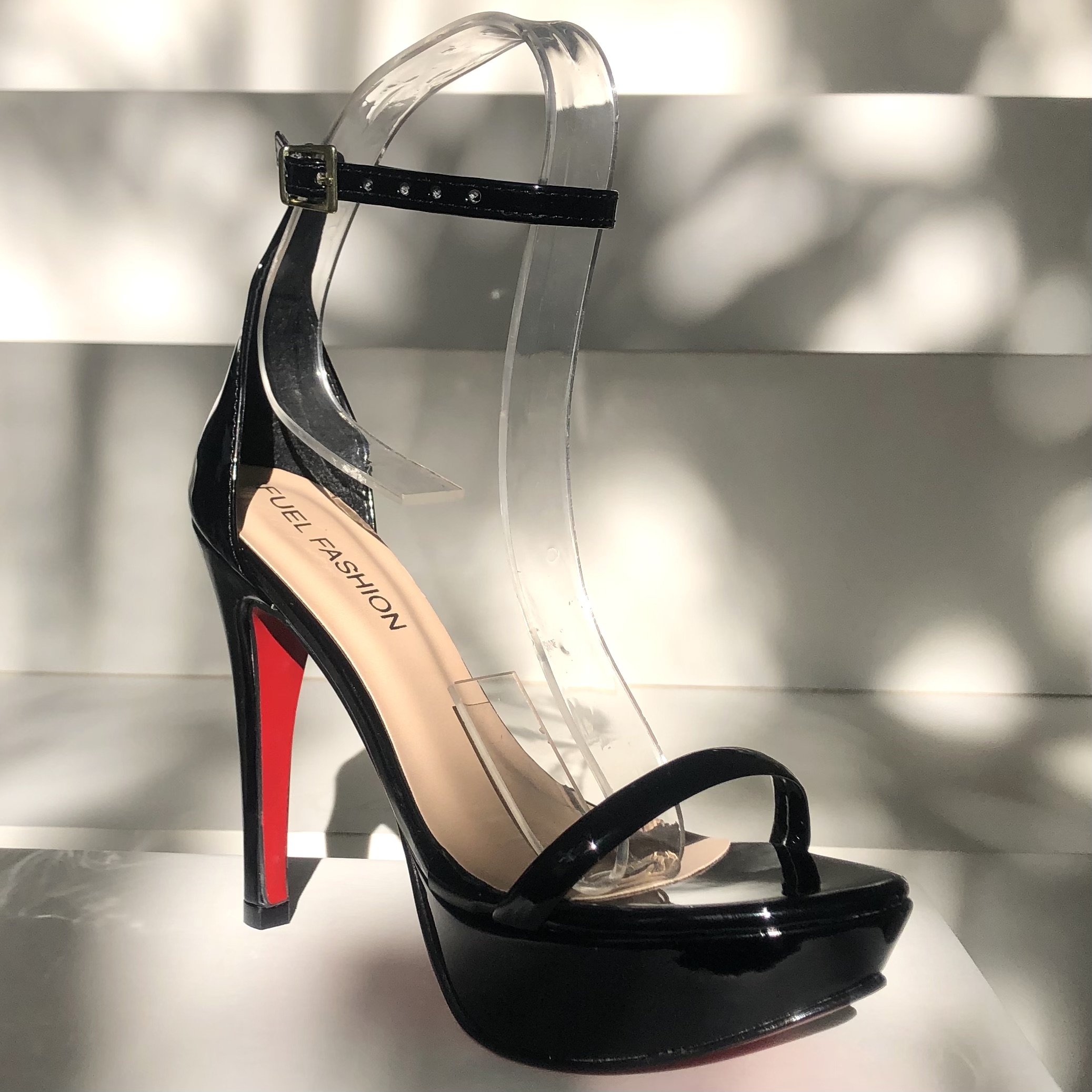 Sandália Salto 12 Meia Pata Preto Verniz Solado Vermelho